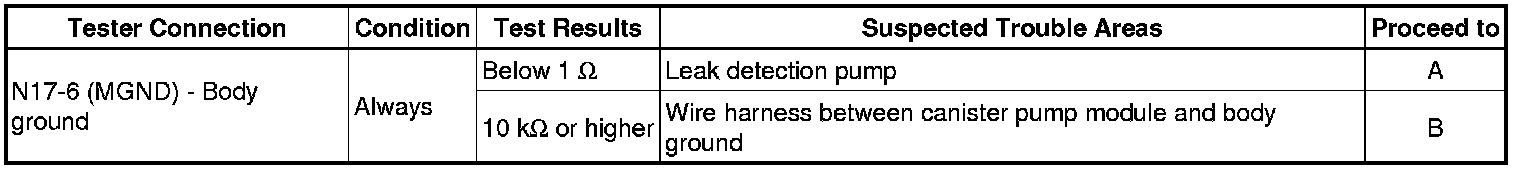 (c) Measure the resistance between the MGND terminal of the canister pump module connector and body ground.
