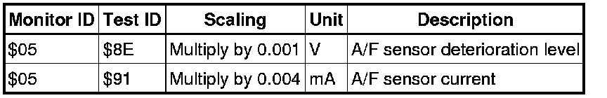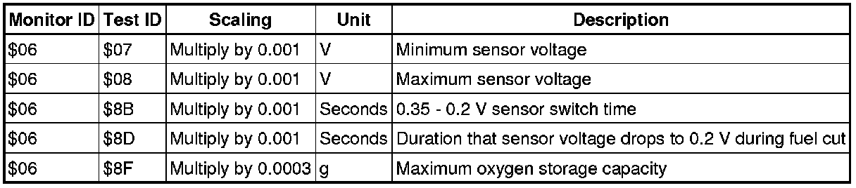 If you use a generic scan tool, multiply the test value by the scaling value listed below.