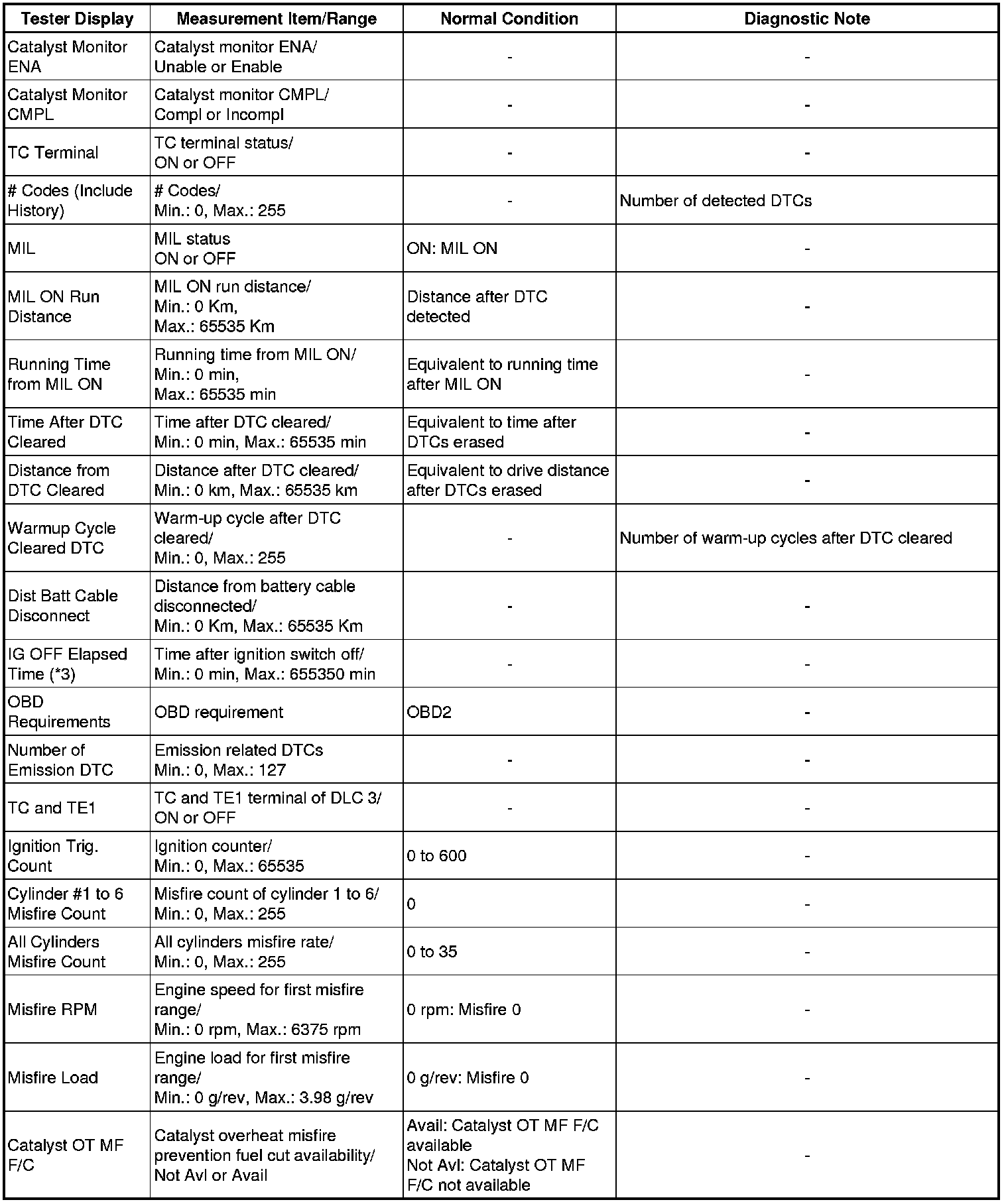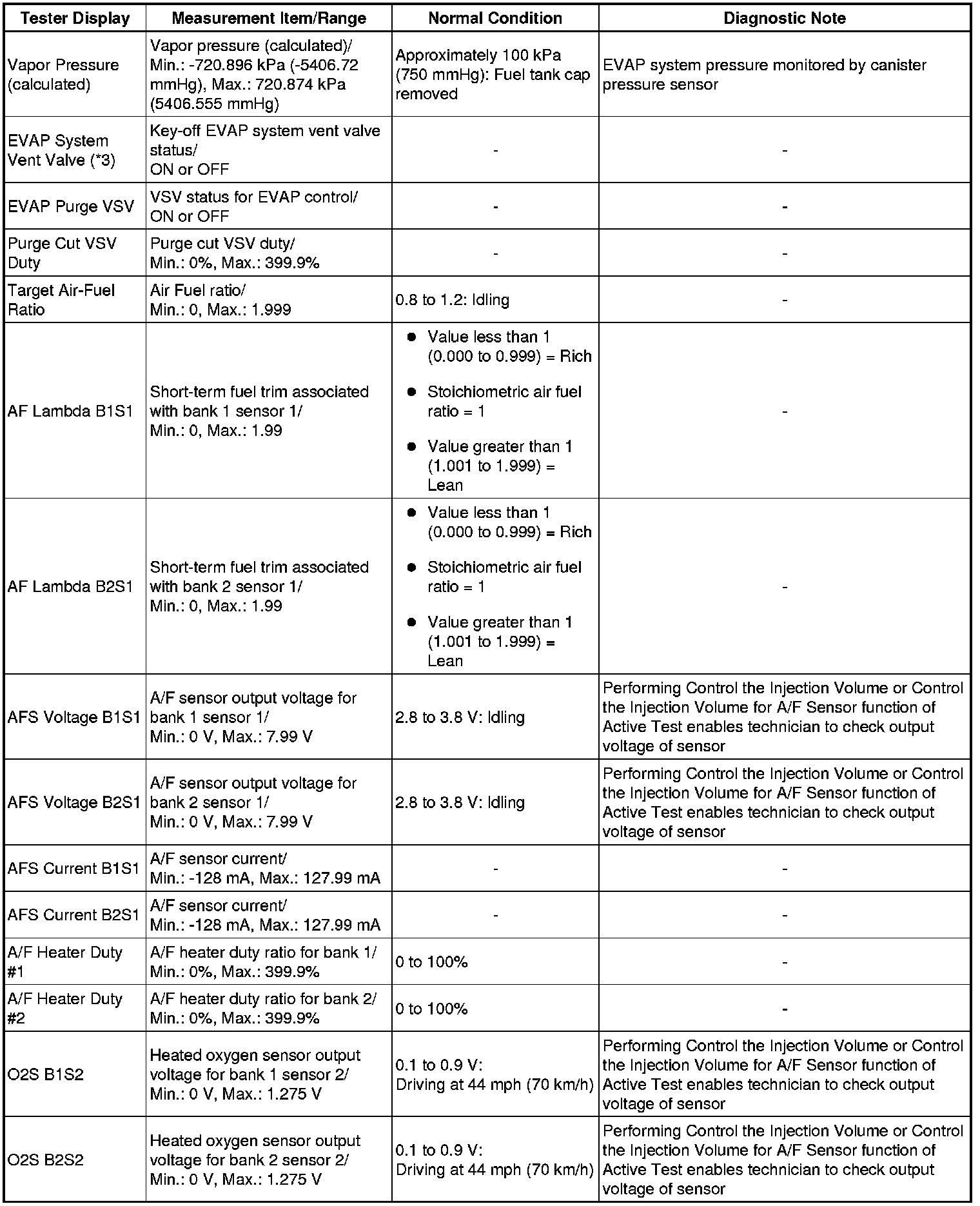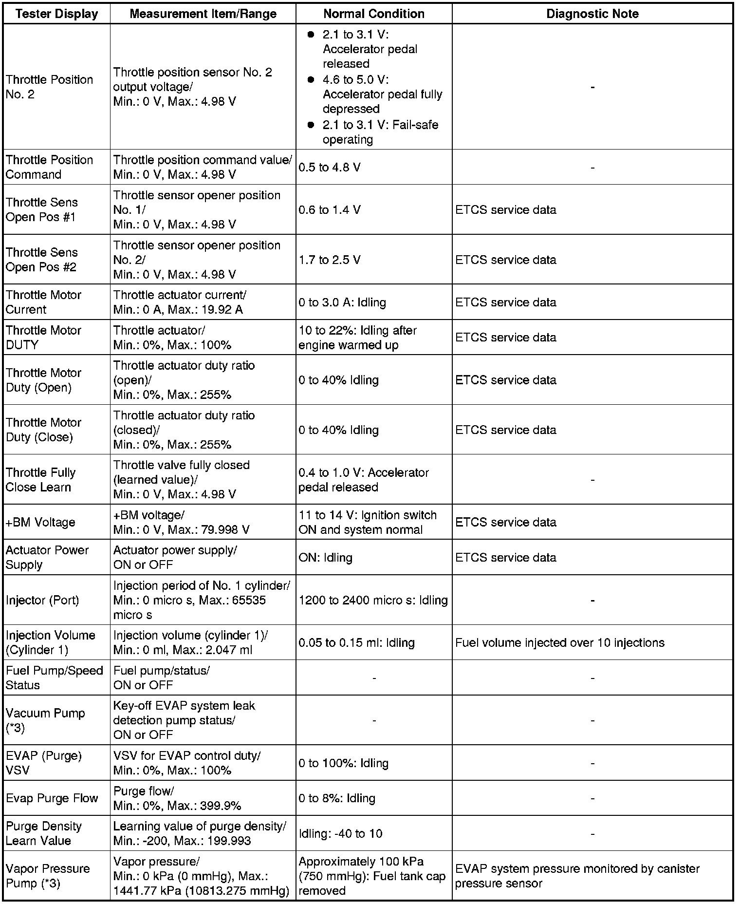 * *2: Data List values are displayed only when performing the following Active Test: Control the VVT Linear (Bank 1 or Bank 2) or Control the VVT Exhaust Linear (Bank 1 or Bank 2). For other Active Test, the Data List value will be 0.
