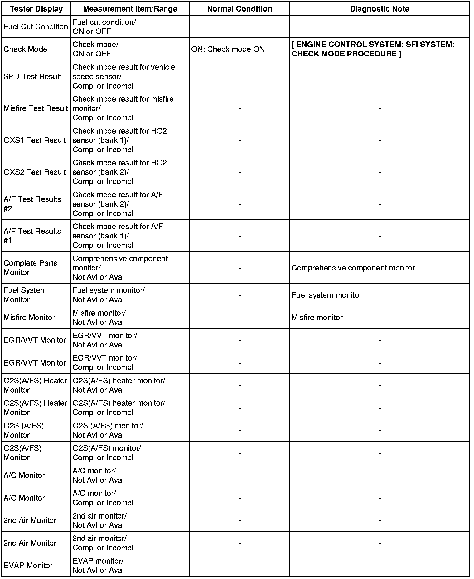 In the table below, the values listed under Normal Condition are reference only. Do not depend solely on these values when determining whether or not a part is faulty.