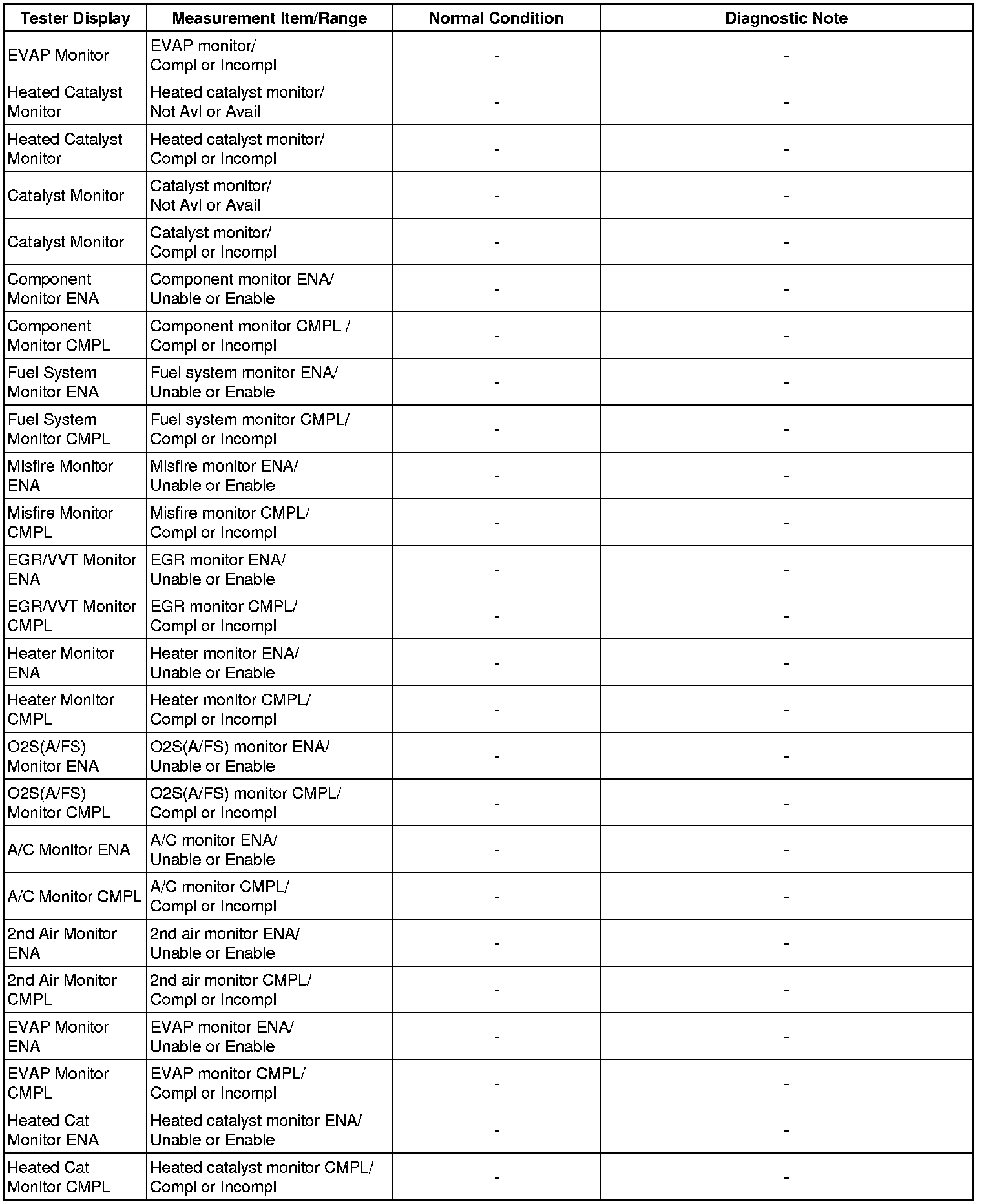 * Normal Condition: If no idling conditions are specified, the transmission gear selector lever should be in the N or P position, and the A/C switch and all accessory switches should be OFF.