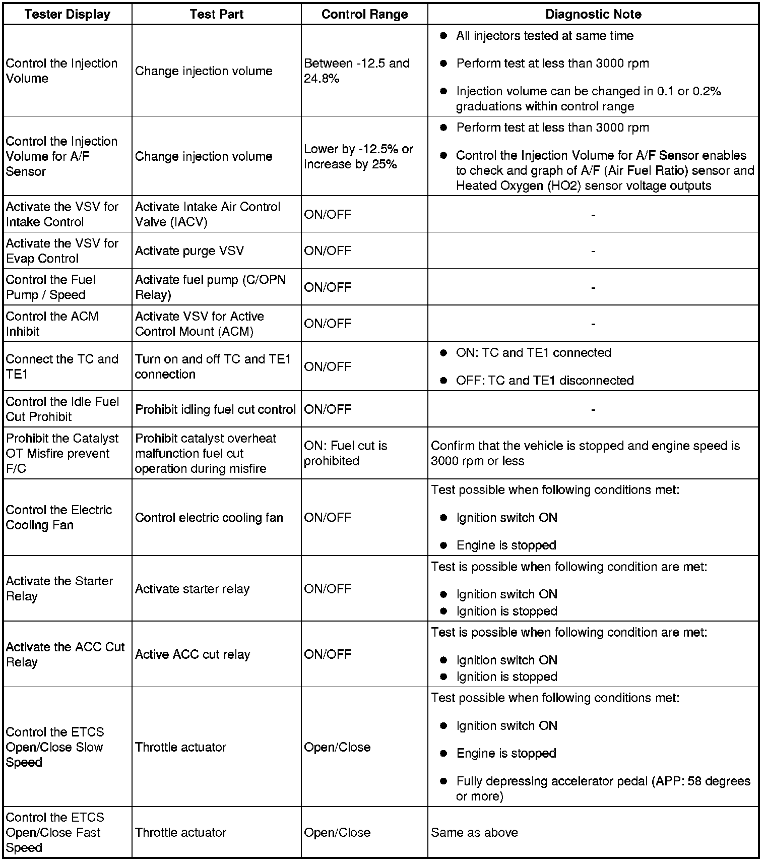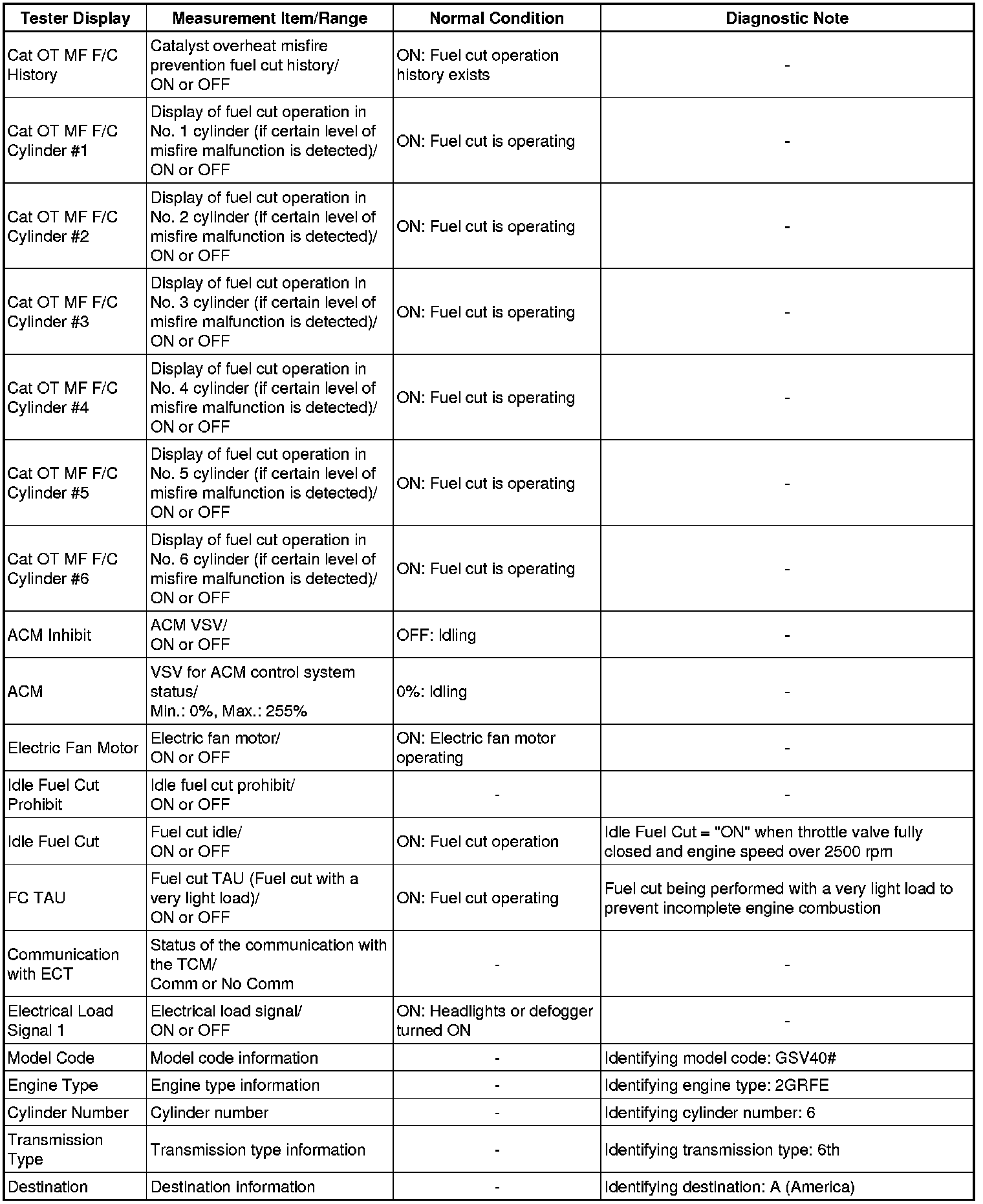 2GR-FE ENGINE CONTROL SYSTEM: SFI SYSTEM: DATA LIST / ACTIVE TEST