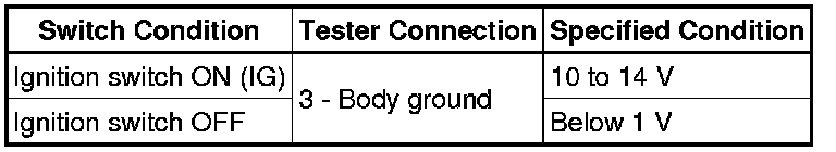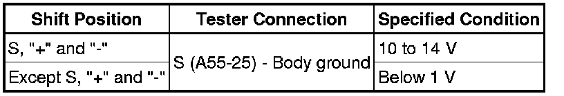 (c) Turn the ignition switch on (IG), and measure the voltage according to the value(s) in the table below when the shift lever is moved to each position.
