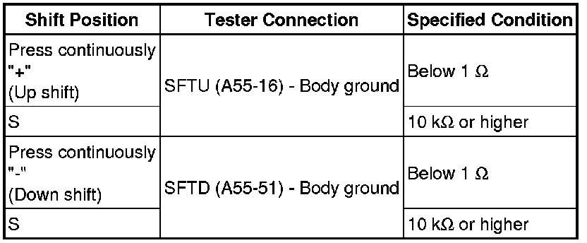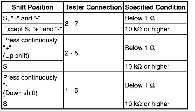 (f) Measure the resistance according to the value(s) in the table below when the shift lever is moved to each position.