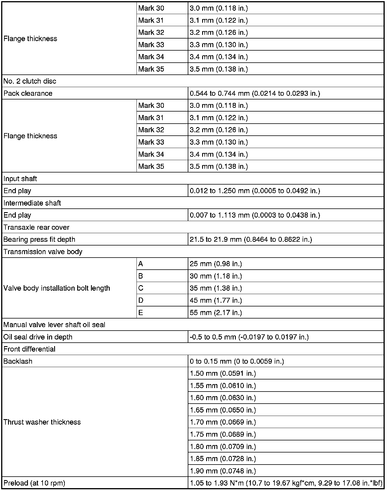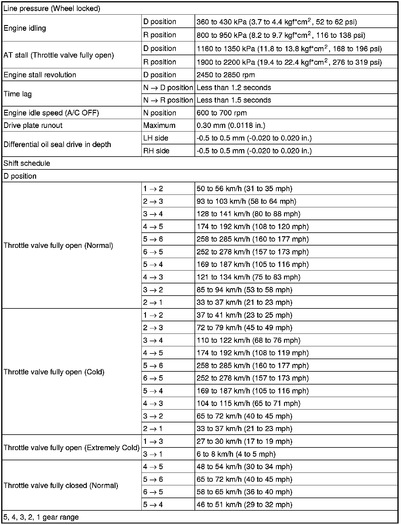 SERVICE SPECIFICATIONS: U660E AUTOMATIC TRANSAXLE: SERVICE DATA