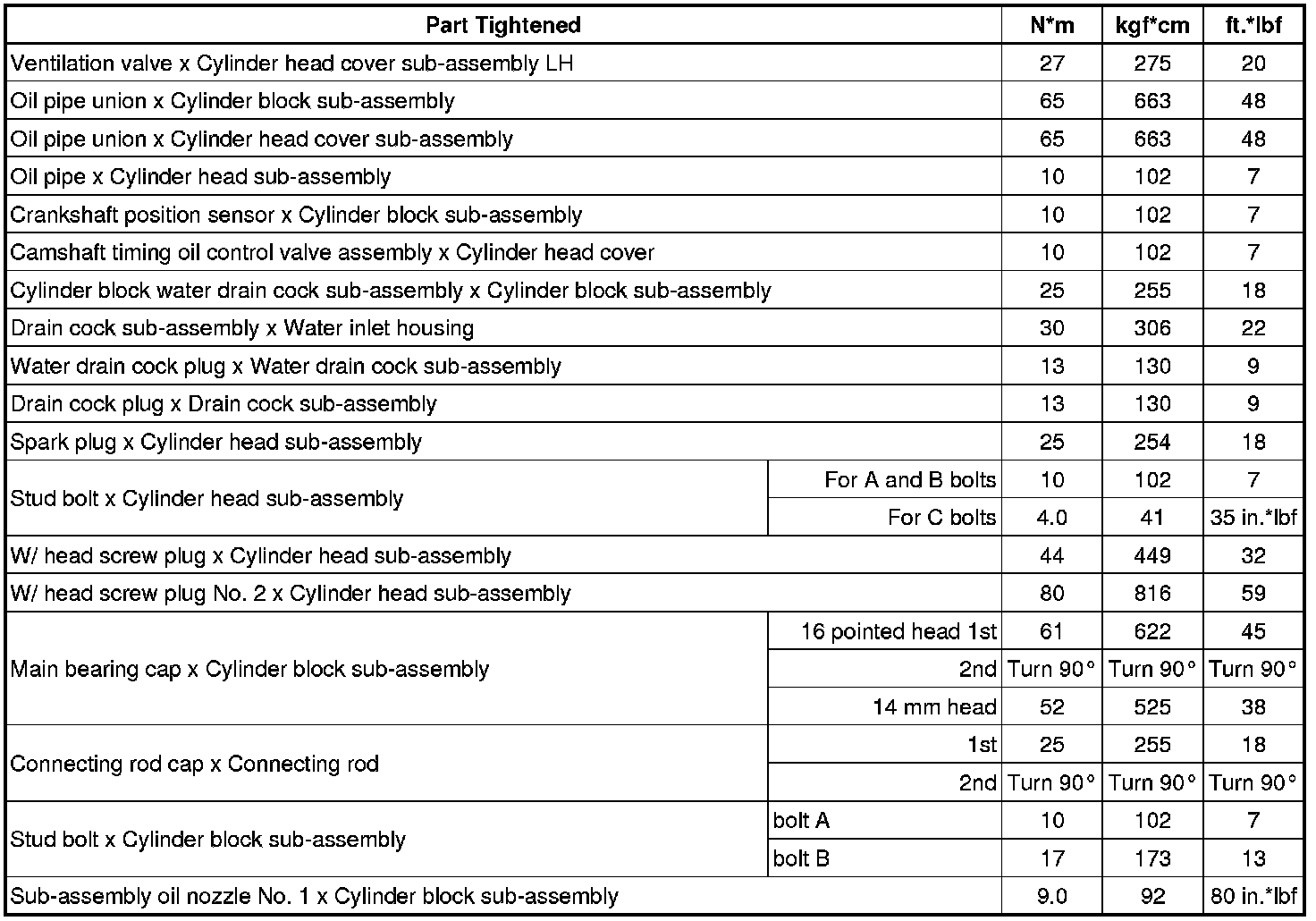 SERVICE SPECIFICATIONS: 2GR-FE ENGINE MECHANICAL: TORQUE SPECIFICATIONS