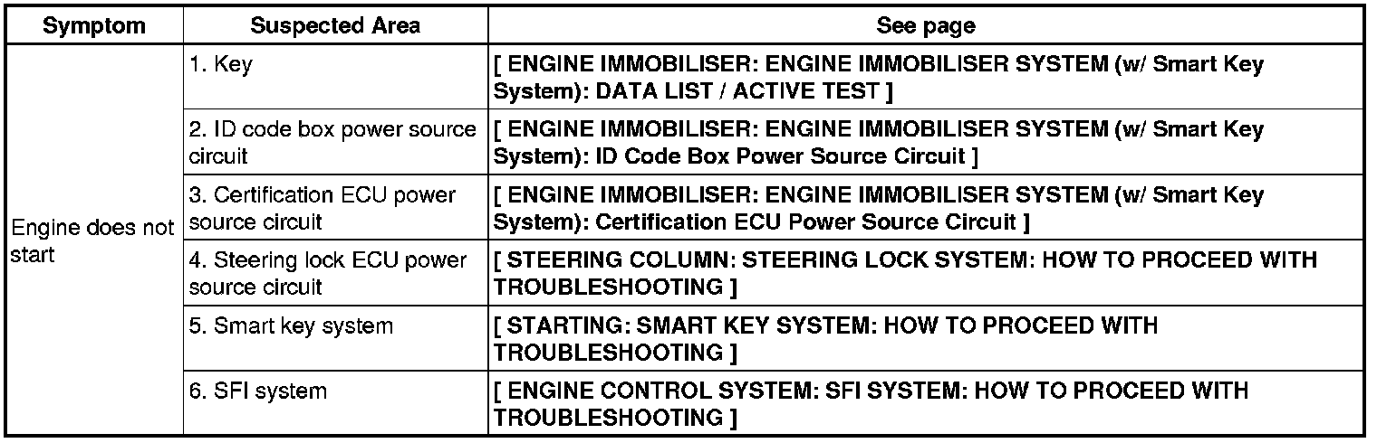 ENGINE IMMOBILISER: ENGINE IMMOBILISER SYSTEM (w/ Smart Key System): PROBLEM SYMPTOMS TABLE
