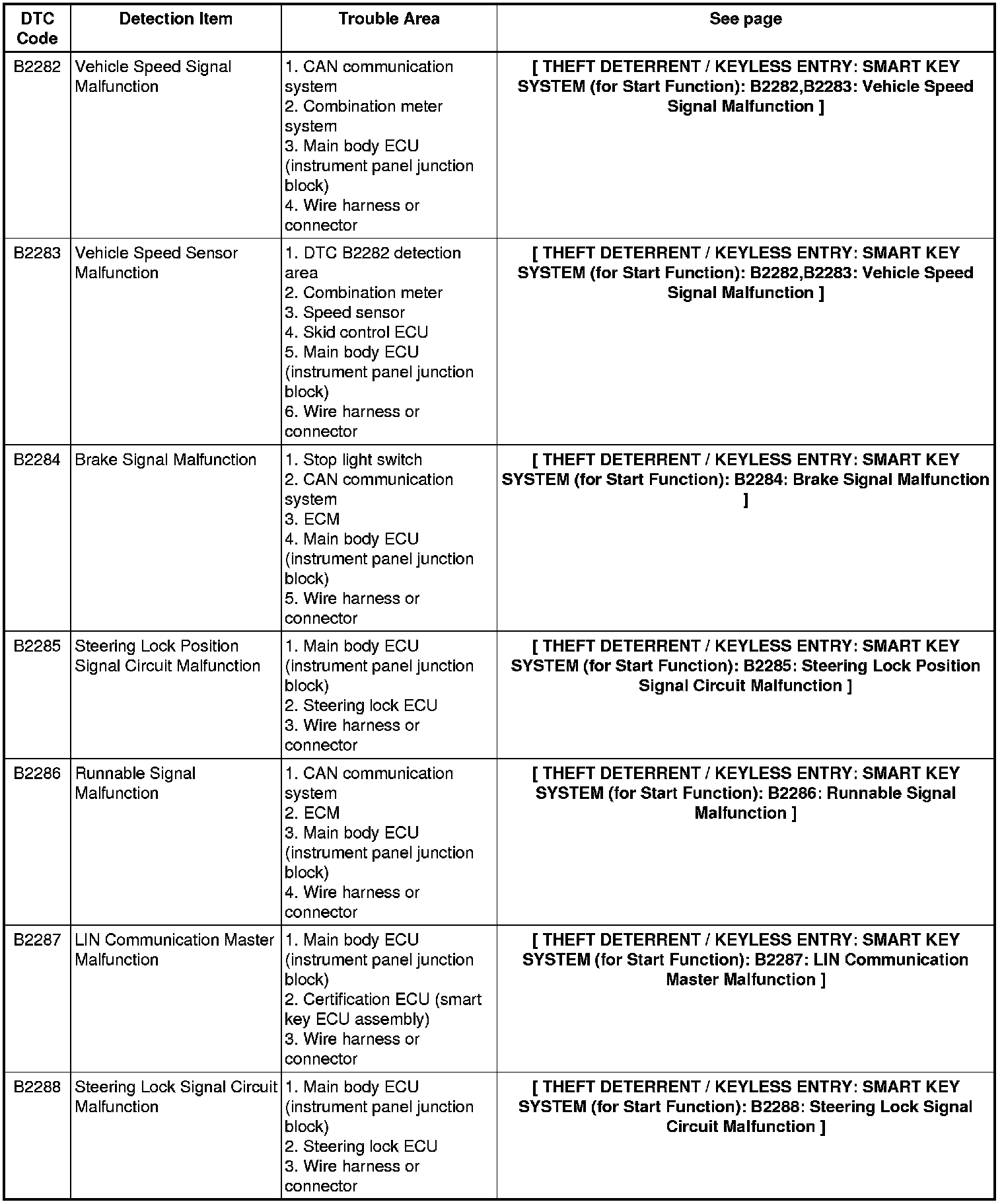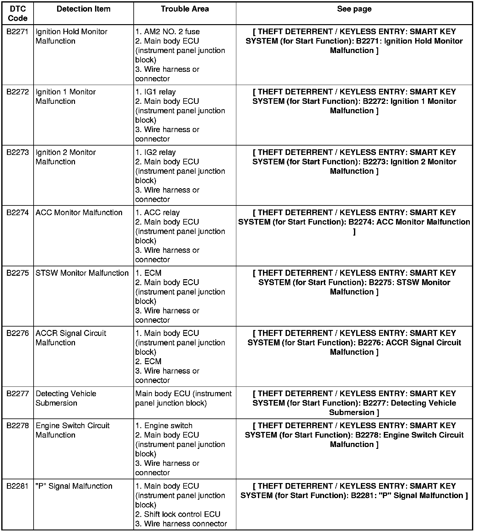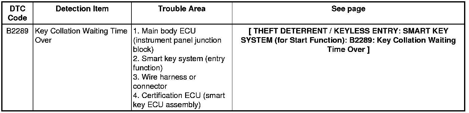 THEFT DETERRENT / KEYLESS ENTRY: SMART KEY SYSTEM (for Start Function): DIAGNOSTIC TROUBLE CODE CHART