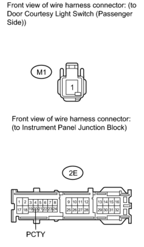 6. CHECK HARNESS AND CONNECTOR (FRONT DOOR COURTESY LIGHT SWITCH - JUNCTION BLOCK)