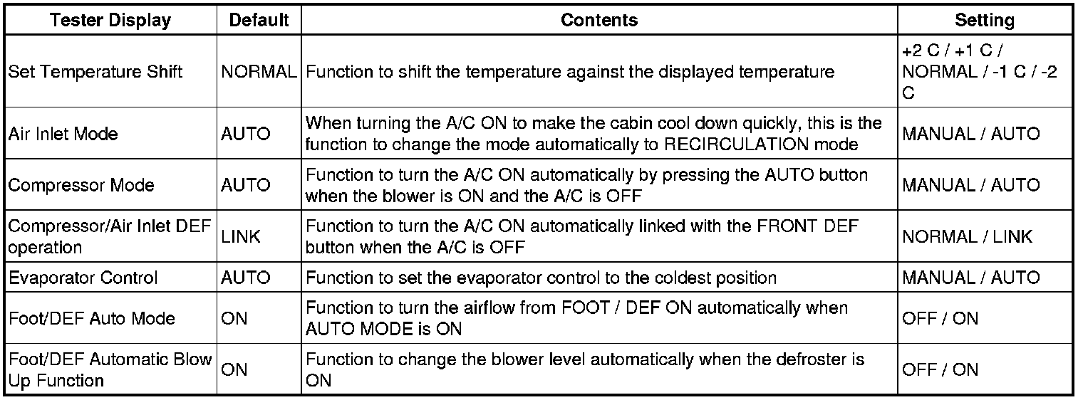 HEATING / AIR CONDITIONING: AIR CONDITIONING SYSTEM (for Automatic Air Conditioning System): CUSTOMIZE PARAMETERS