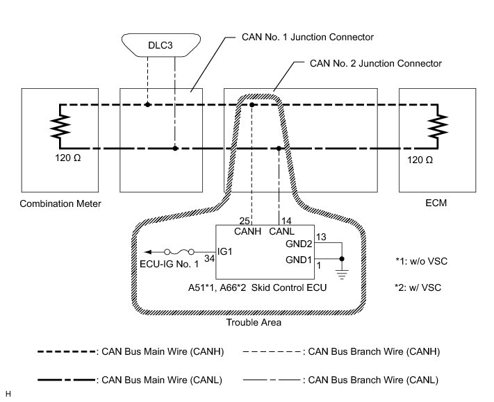 1. CHECK CAN BUS WIRE FOR DISCONNECTION (SKID CONTROL ECU BRANCH WIRE)