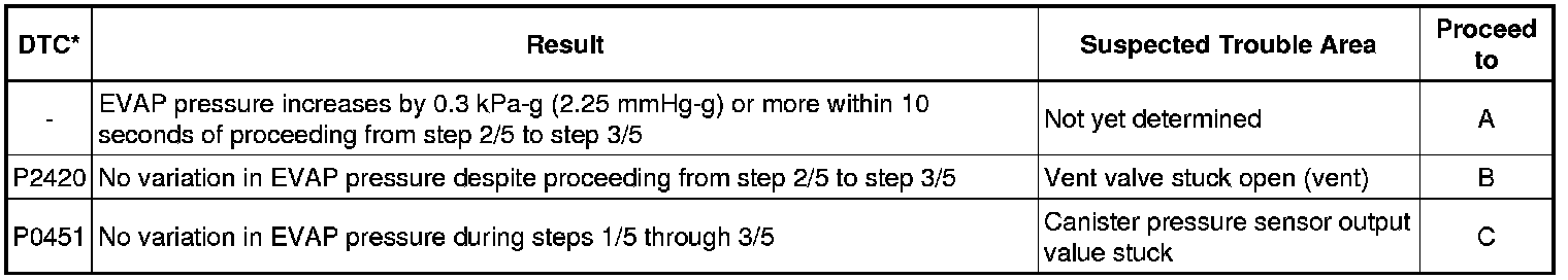 (b) Compare the EVAP pressure in step 3/5 and the second reference pressure (step 5/5).