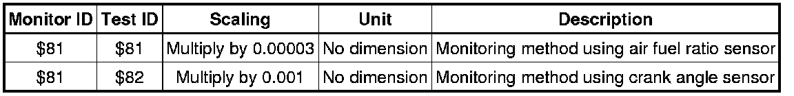 If you use a generic scan tool, multiply the test value by the scaling value listed below.