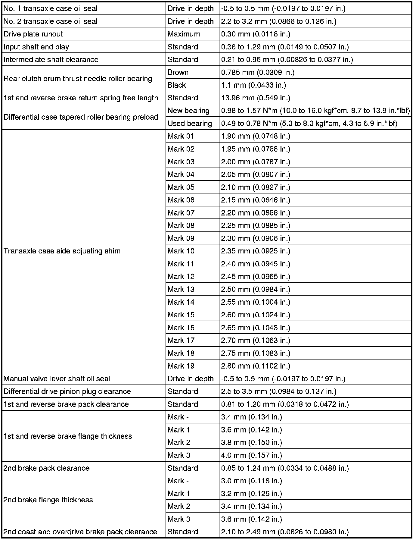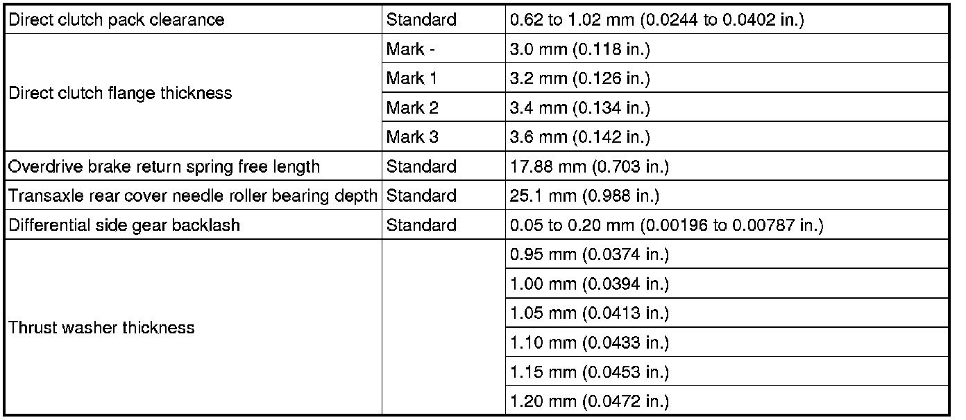SPECIFICATIONS: U341E AUTOMATIC TRANSMISSION / TRANSAXLE: SERVICE DATA