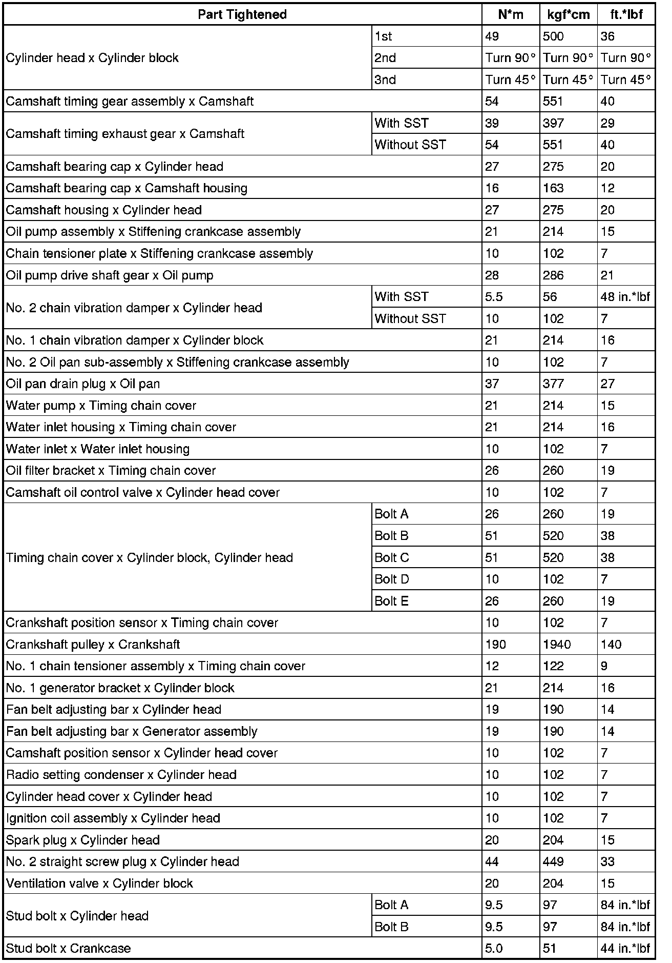 SPECIFICATIONS: 2ZR-FE ENGINE MECHANICAL: TORQUE SPECIFICATIONS