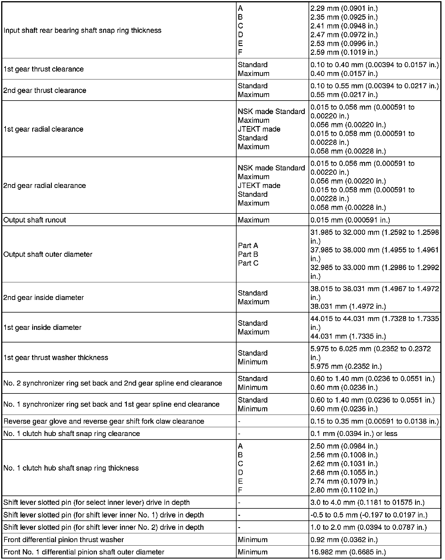 SPECIFICATIONS: C59 MANUAL TRANSMISSION / TRANSAXLE: SERVICE DATA