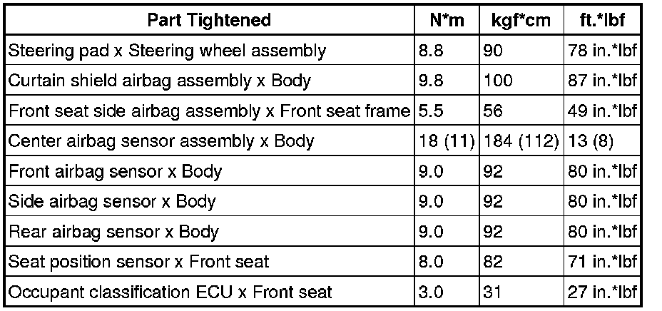 SPECIFICATIONS: SUPPLEMENTAL RESTRAINT SYSTEMS: TORQUE SPECIFICATIONS