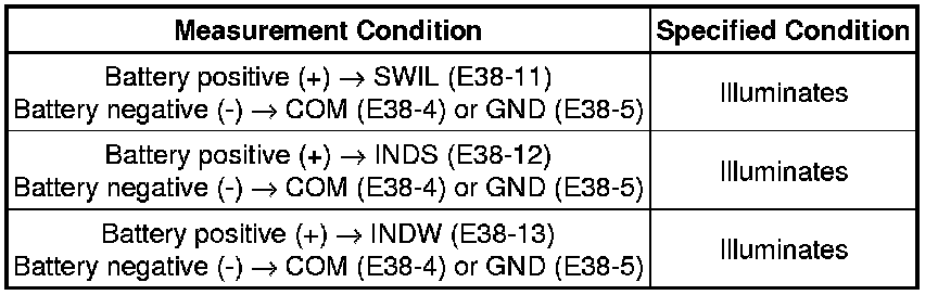 (b) Apply battery voltage between the terminals of the switch and check the illumination condition of the switch.