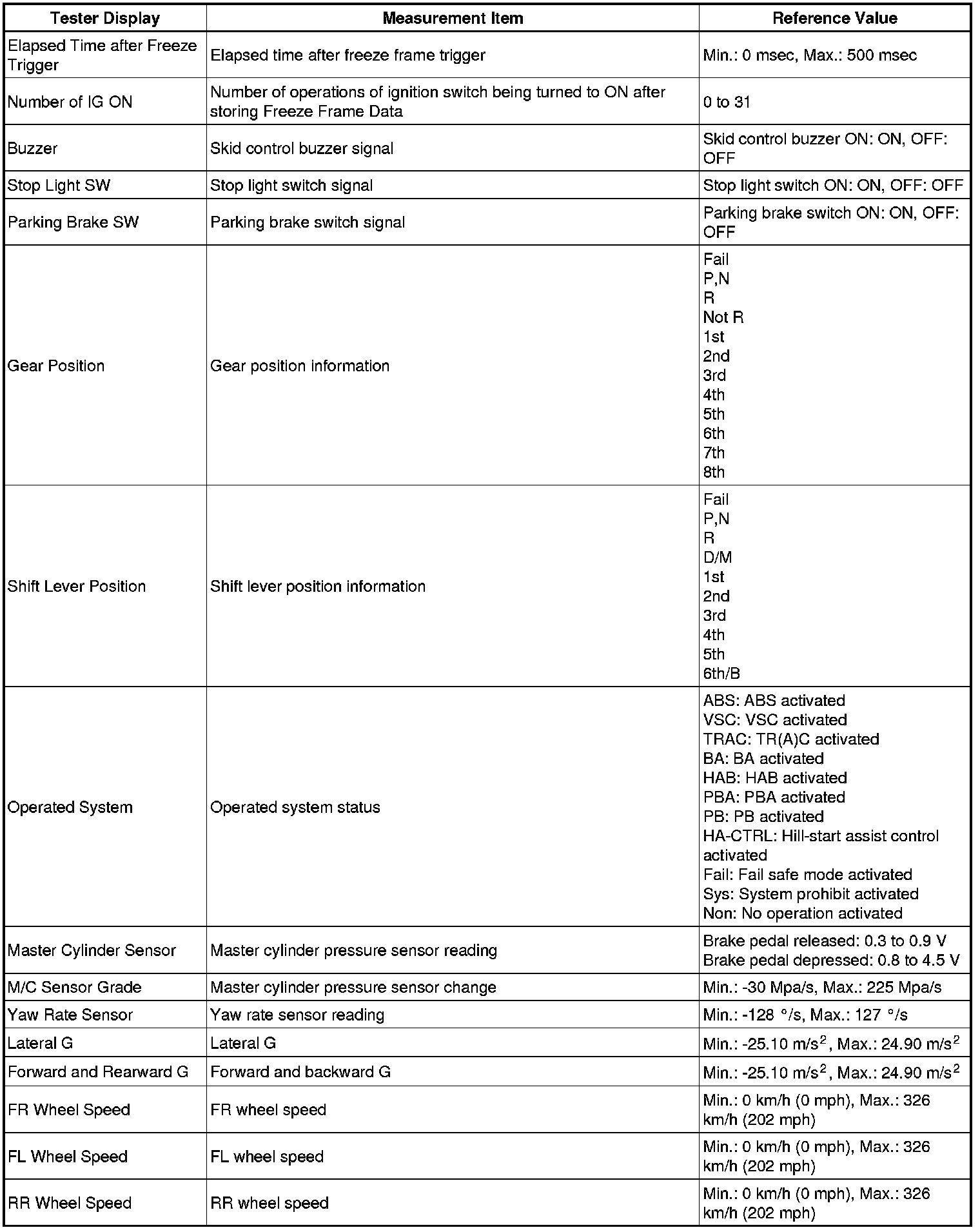 BRAKE CONTROL / DYNAMIC CONTROL SYSTEMS: VEHICLE STABILITY CONTROL SYSTEM: FREEZE FRAME DATA