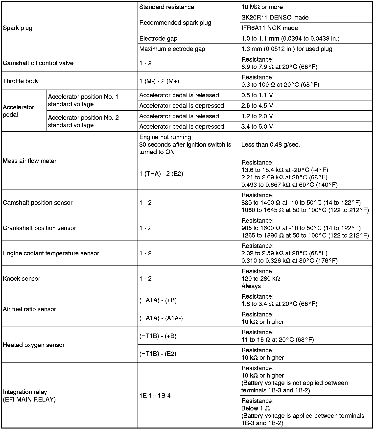 SPECIFICATIONS: 2AZ-FE ENGINE CONTROL: SERVICE DATA
