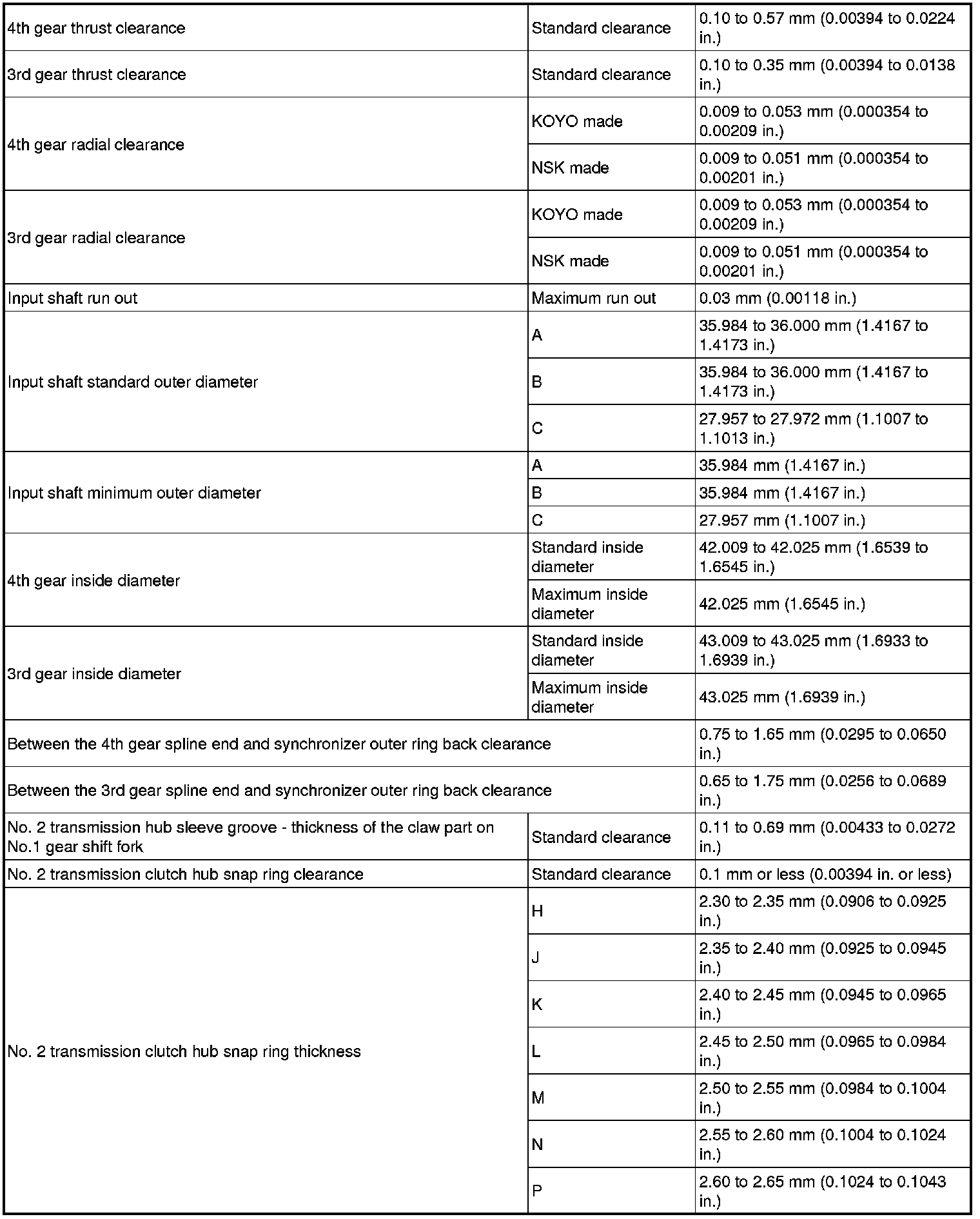 SPECIFICATIONS: E351 MANUAL TRANSMISSION / TRANSAXLE: SERVICE DATA