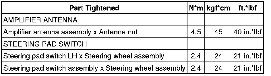 SPECIFICATIONS: AUDIO / VIDEO: TORQUE SPECIFICATIONS