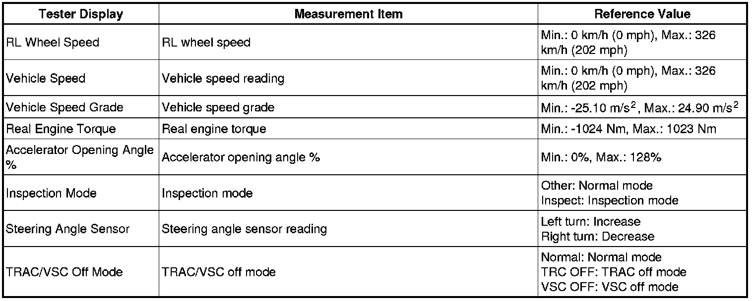 BRAKE CONTROL / DYNAMIC CONTROL SYSTEMS: VEHICLE STABILITY CONTROL SYSTEM (for 2AZ-FE): FREEZE FRAME DATA