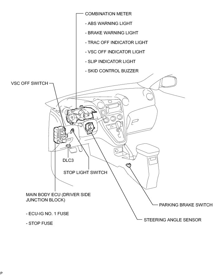BRAKE CONTROL / DYNAMIC CONTROL SYSTEMS: VEHICLE STABILITY CONTROL SYSTEM (for 2AZ-FE): PARTS LOCATION