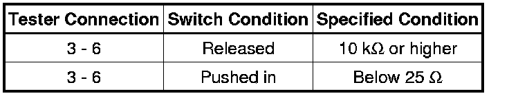 If the result is not as specified, replace the switch.