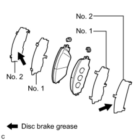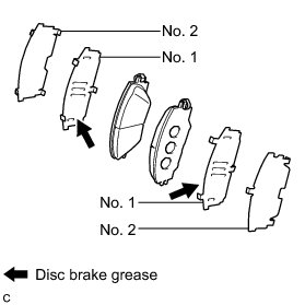 (a) Apply disc brake grease to both sides of each No. 2 anti-squeal shim as shown in the illustration.