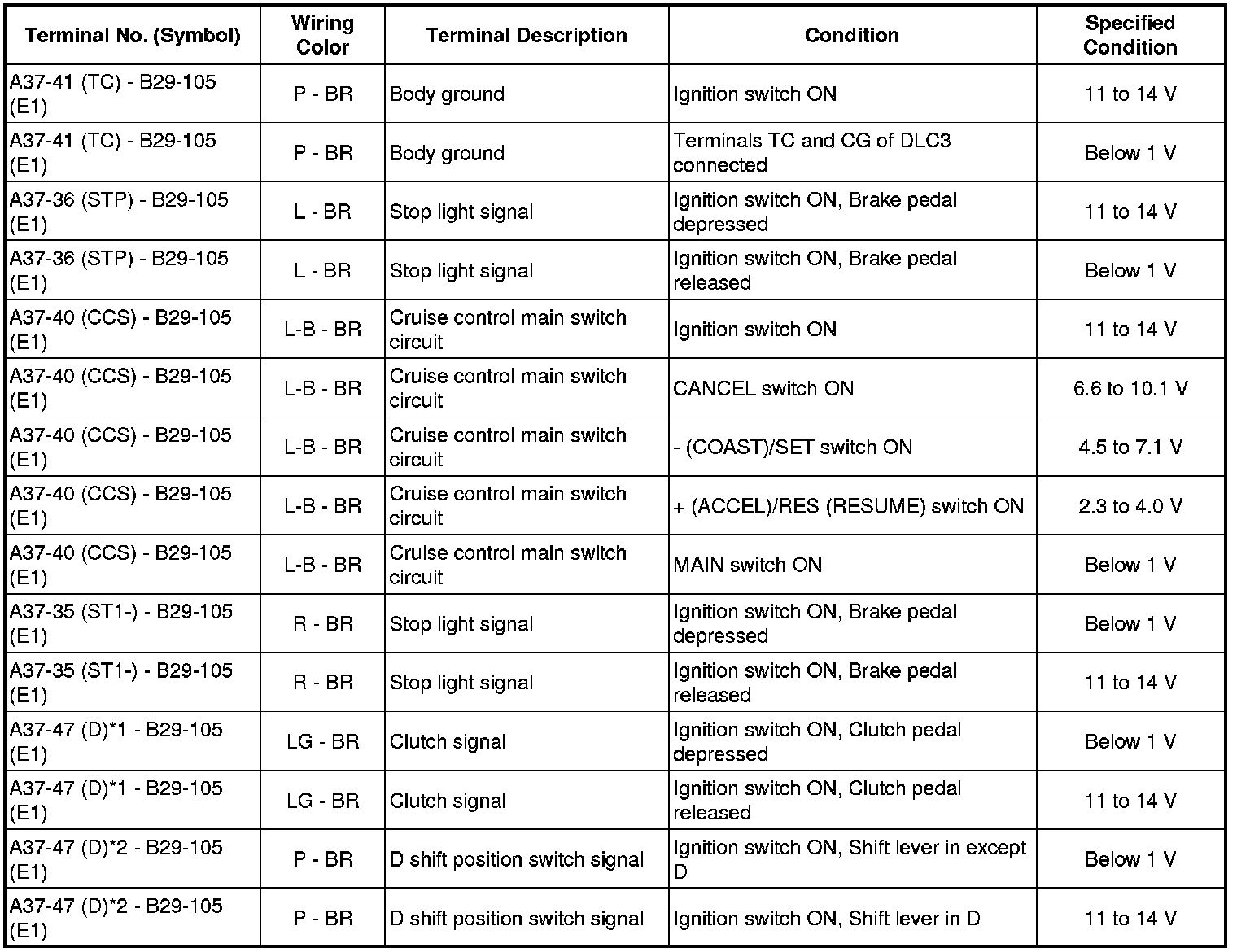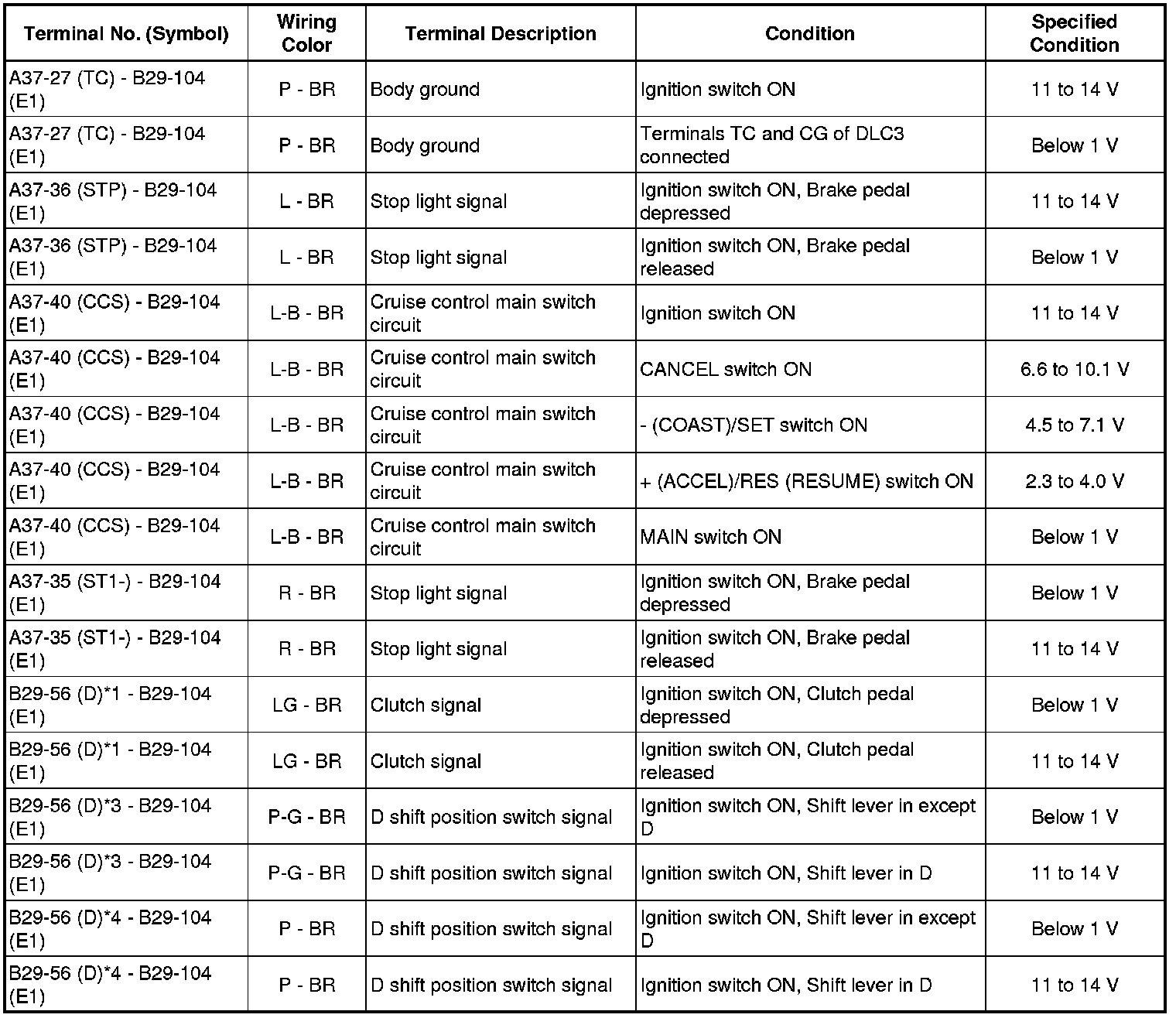 : CRUISE CONTROL SYSTEM: TERMINALS OF ECM