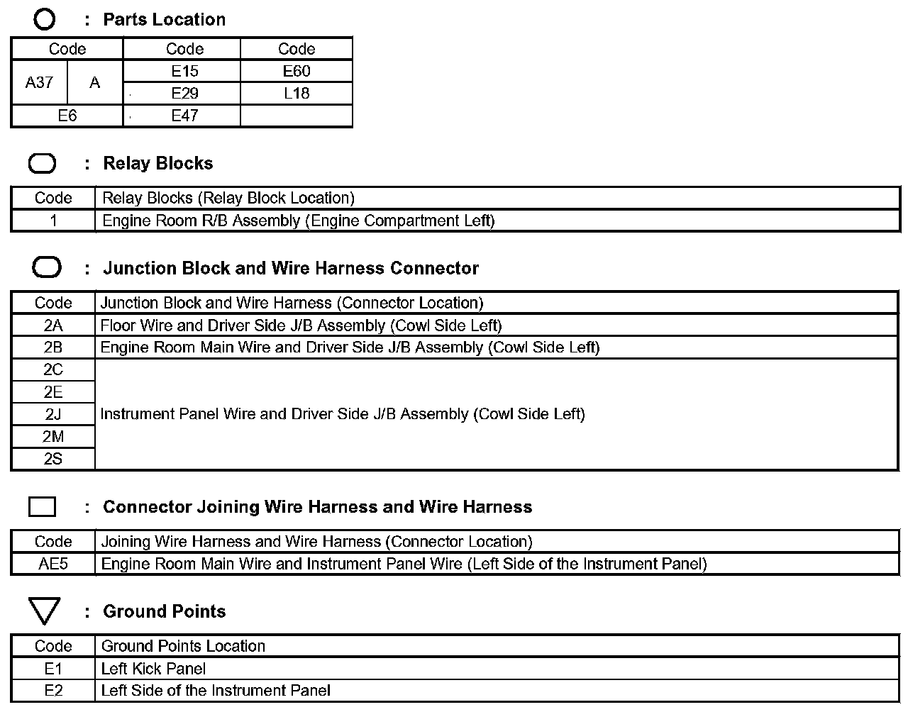 Locations: The locations of components, connectors, ground points, and splices referred to within these diagrams can be found at Vehicle Locations. Locations