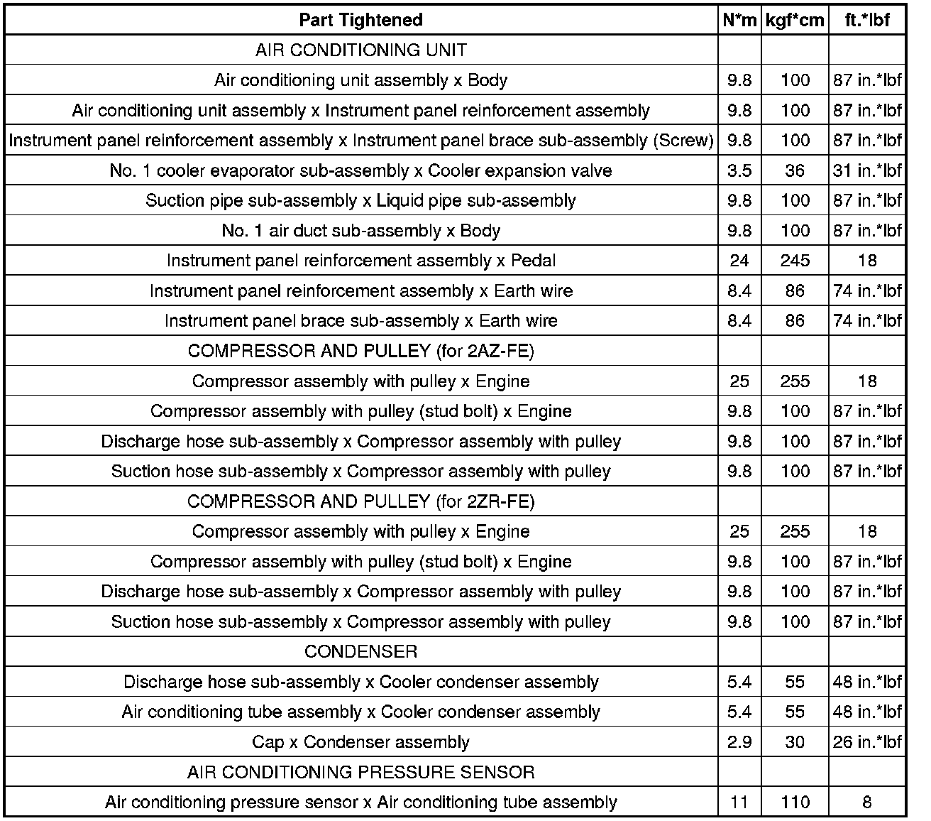 SPECIFICATIONS: HEATING / AIR CONDITIONING: TORQUE SPECIFICATIONS