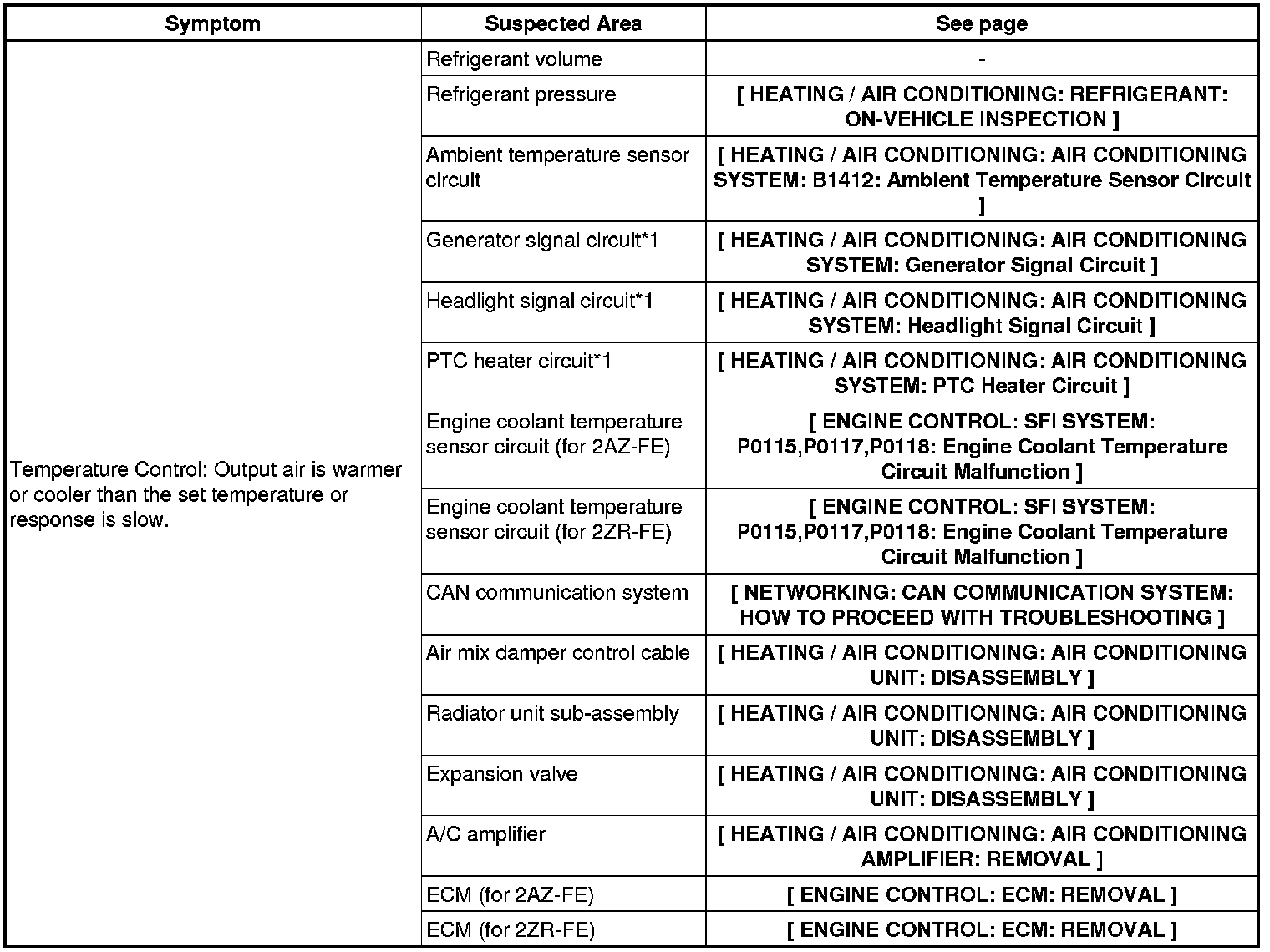 HEATING / AIR CONDITIONING: AIR CONDITIONING SYSTEM: PROBLEM SYMPTOMS TABLE