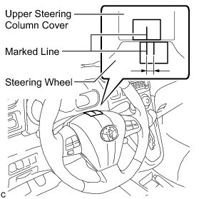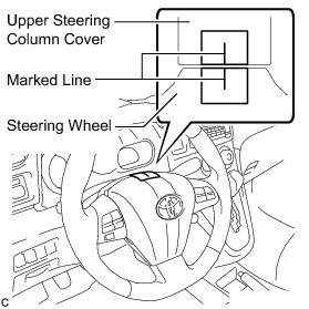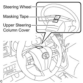 (1) Apply masking tape on the top center of the steering wheel and upper steering column cover.
