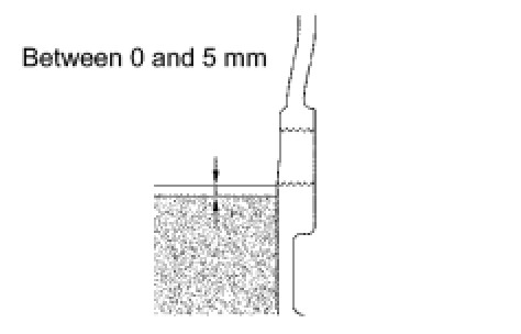 (a) Add oil until the oil level is between 0 and 5 mm (0 and 0.197 in.) from the bottom lip of the differential carrier cover plug opening.