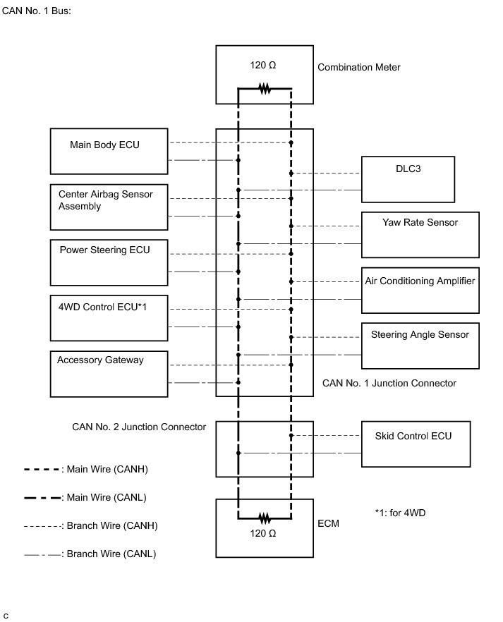 (1) The main bus wire is a wire harness between the 2 terminating resistors on the bus (communication wire). This is the main bus in the CAN communication system.