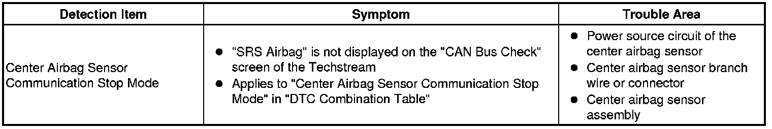 NETWORKING: CAN COMMUNICATION SYSTEM: Center Airbag Sensor Communication Stop Mode