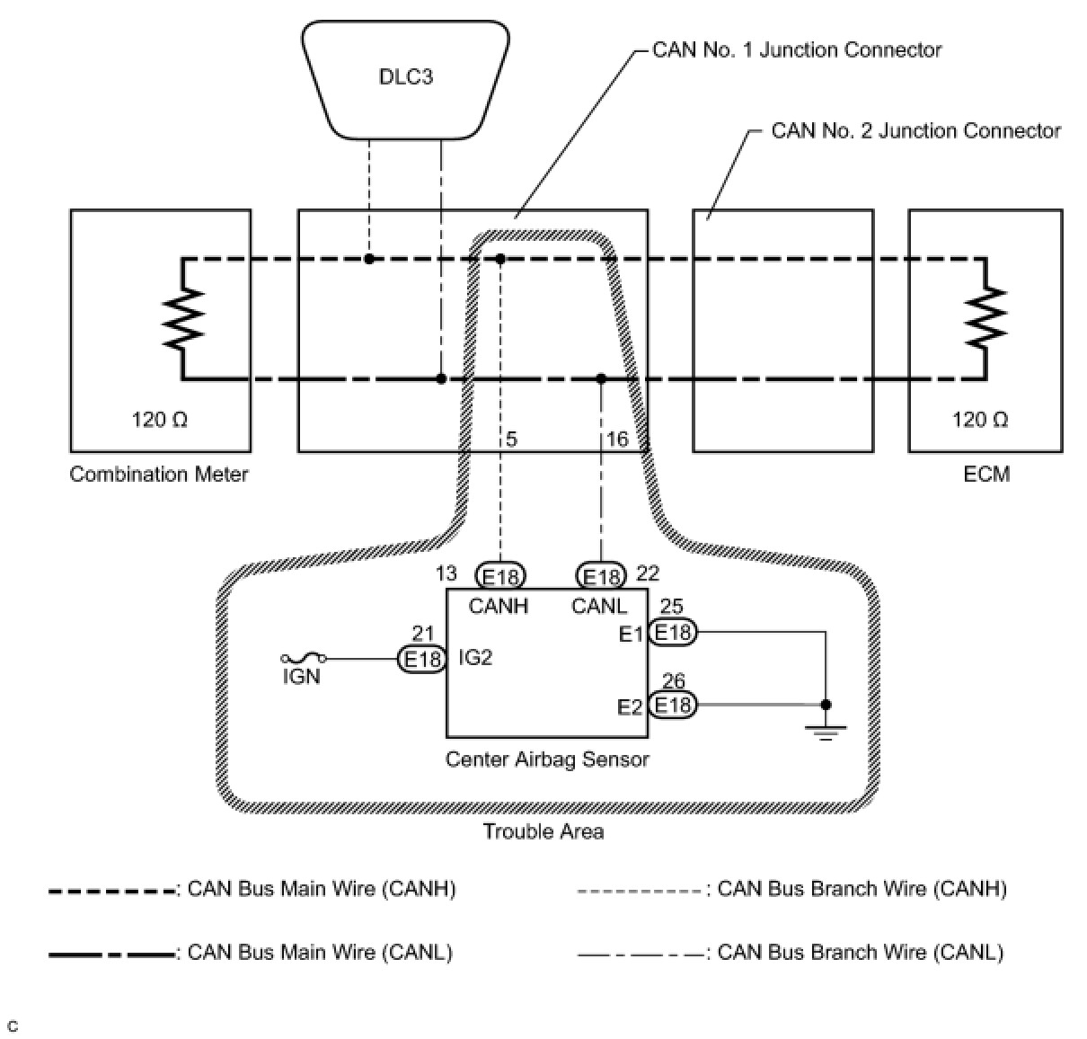 NG -- REPAIR OR REPLACE CAN BUS BRANCH WIRE OR CONNECTOR (CENTER AIRBAG SENSOR ASSEMBLY BRANCH WIRE)