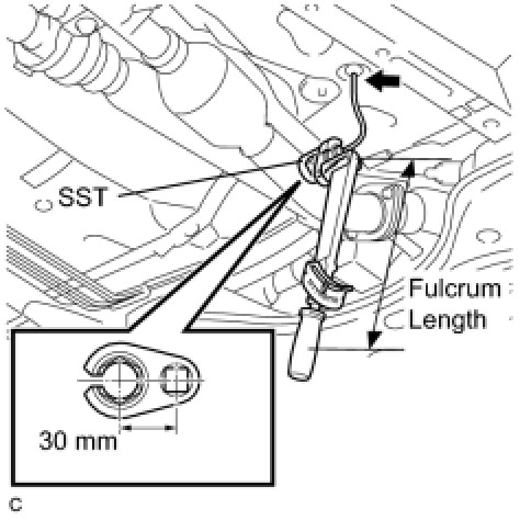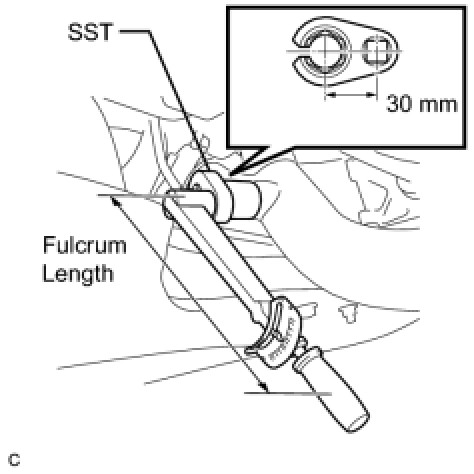 * This torque value can be obtained by using a torque wrench with a fulcrum length of 300 mm (11.8 in.) and SST with a measurement of 30 mm (1.18 in.) Service Precautions.