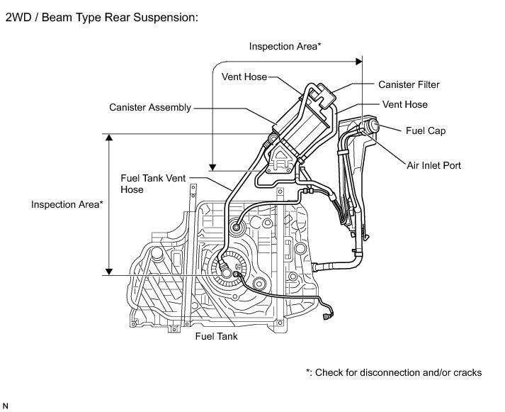 When replacing the canister, check the canister pump module interior and related pipes for water, fuel and other liquids. If liquids are present, check for disconnections and/or cracks in the following: 1) the pipe from the air inlet port to the canister pump module; 2) the canister filter; and 3) the fuel tank vent hose.