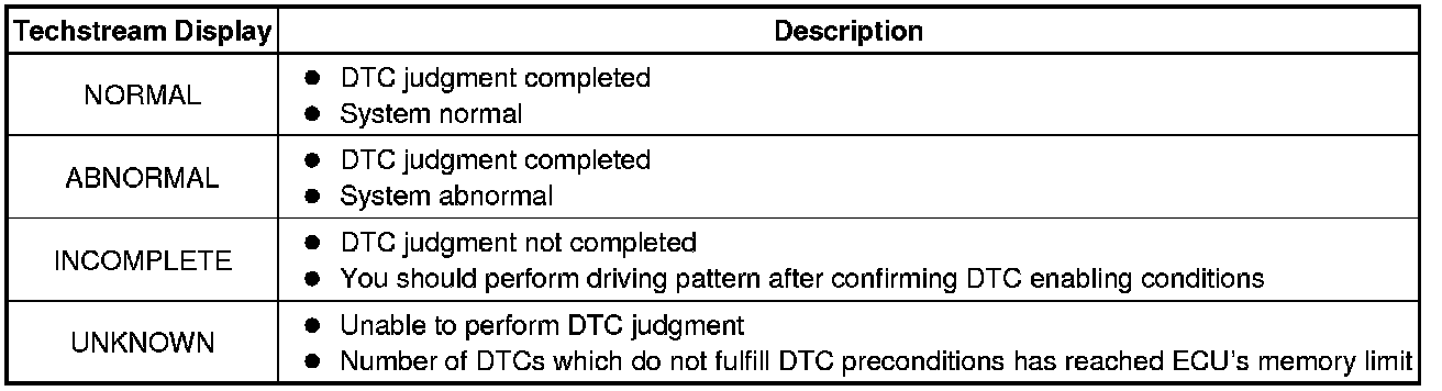 * With "ALL READINESS" you can check whether or not the DTC judgment has been completed by using the Techstream.