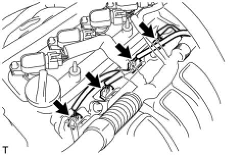 (2) Disconnect the 4 fuel injector connectors.