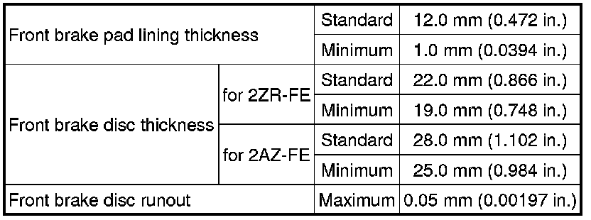SPECIFICATIONS: BRAKE (FRONT): SERVICE DATA