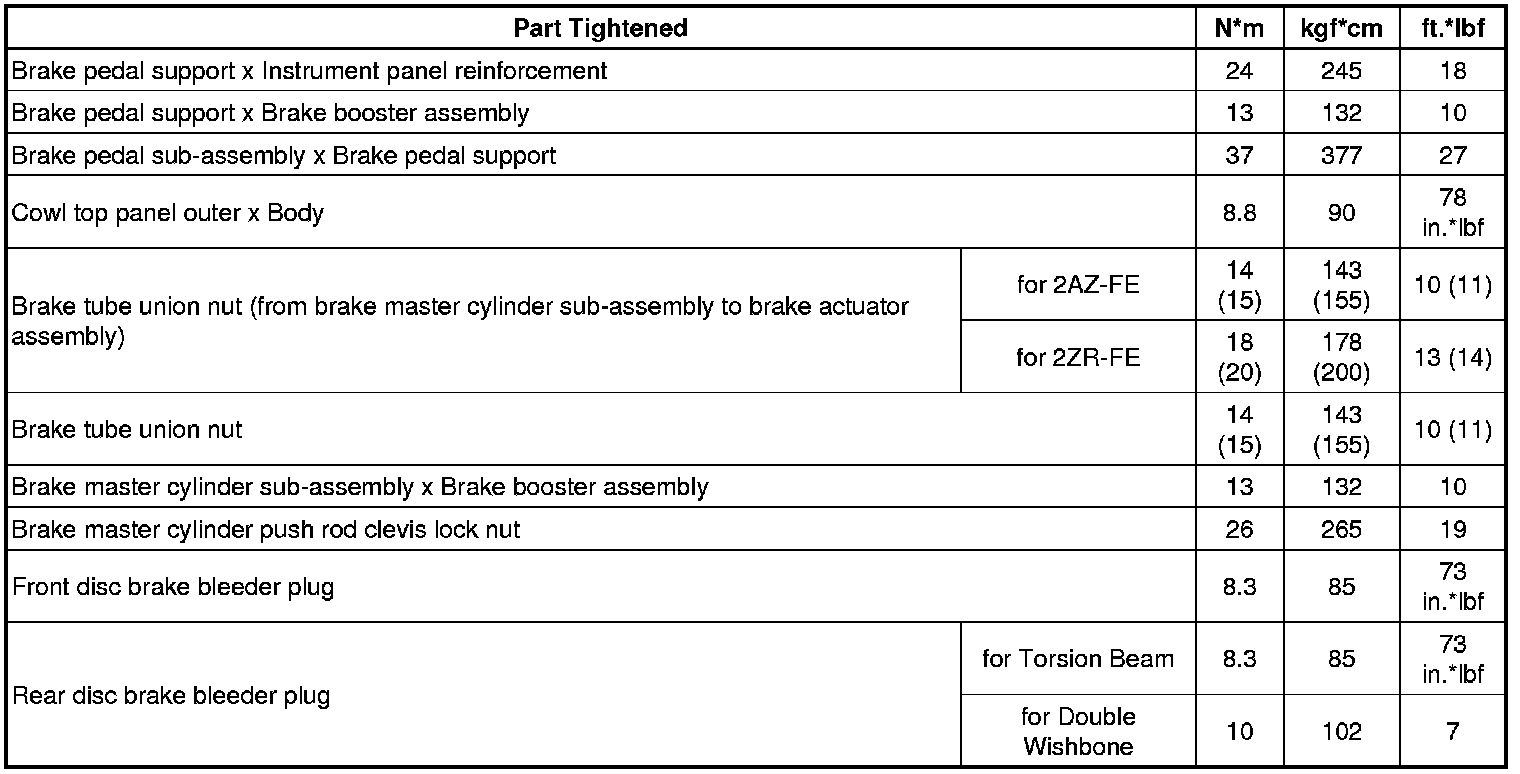 SPECIFICATIONS: BRAKE SYSTEM (OTHER): TORQUE SPECIFICATIONS