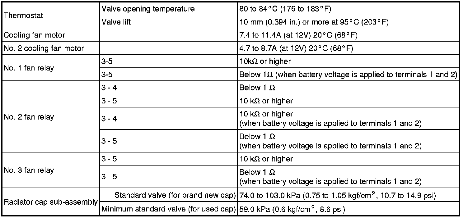 SPECIFICATIONS: 2AZ-FE COOLING: SERVICE DATA