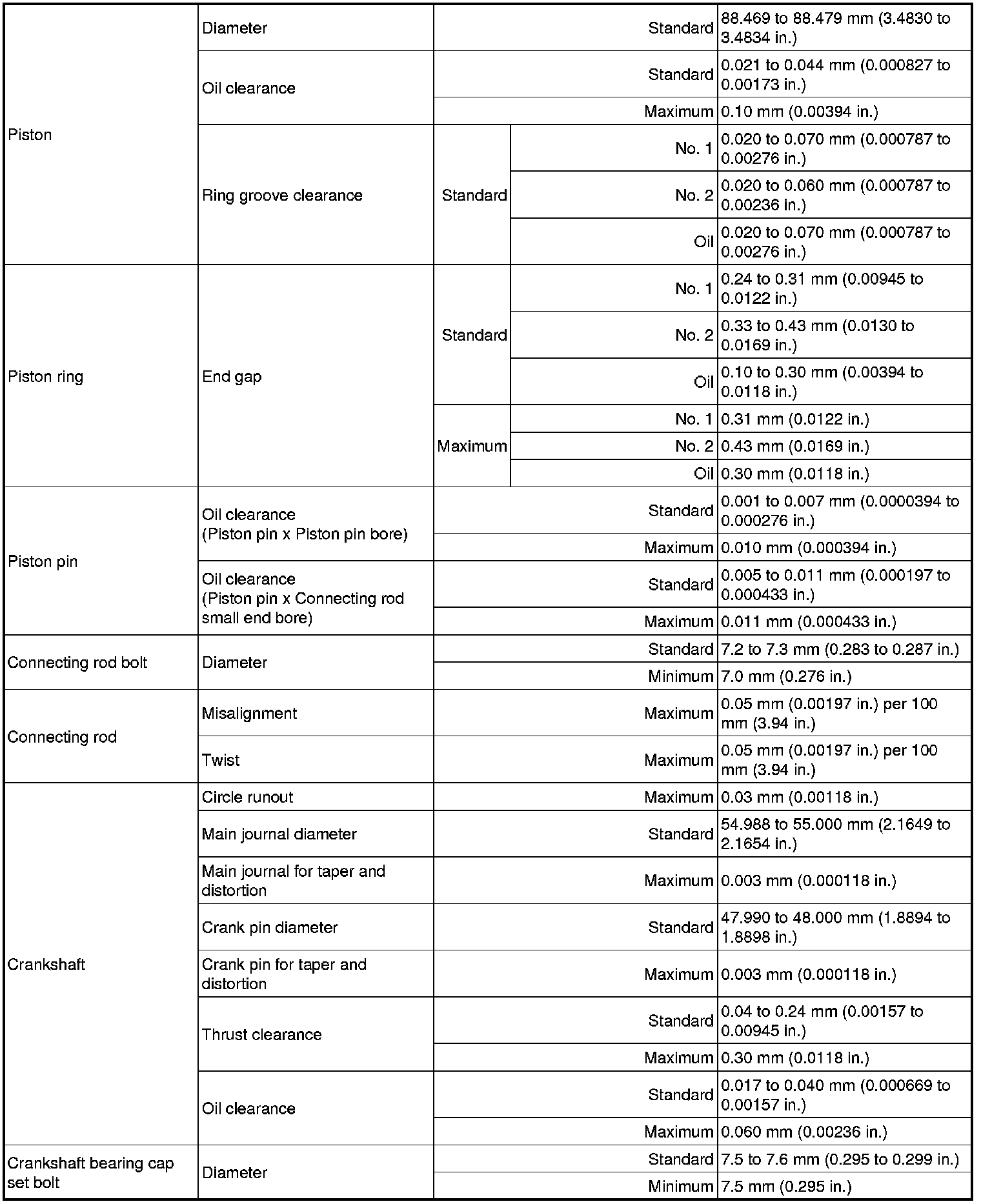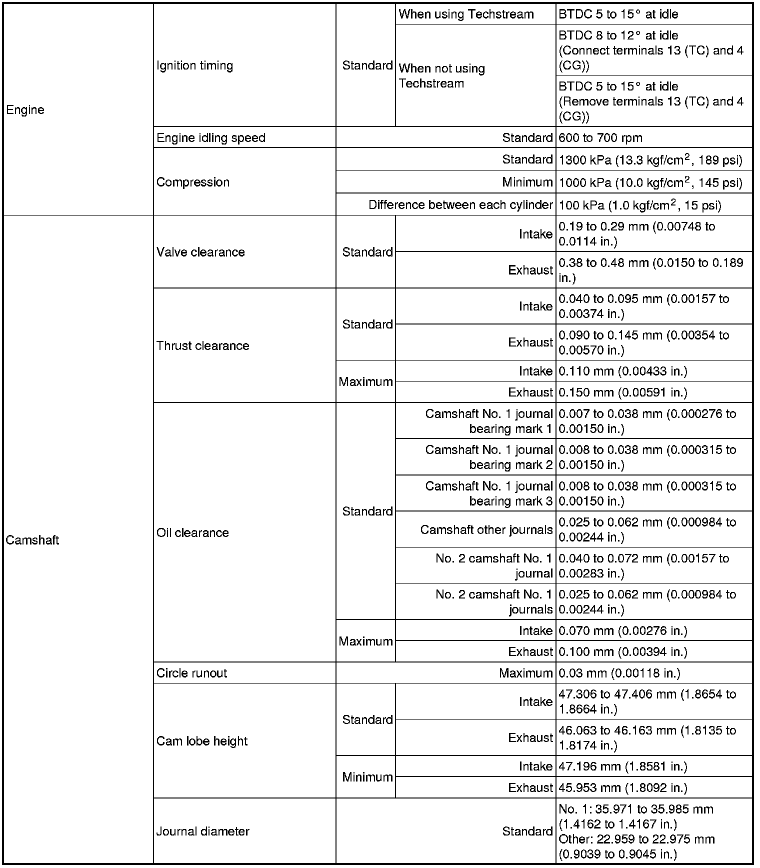 SPECIFICATIONS: 2AZ-FE ENGINE MECHANICAL: SERVICE DATA