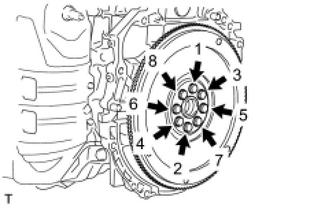 In several steps, uniformly install and tighten the 8 bolts in the sequence shown in the illustration.