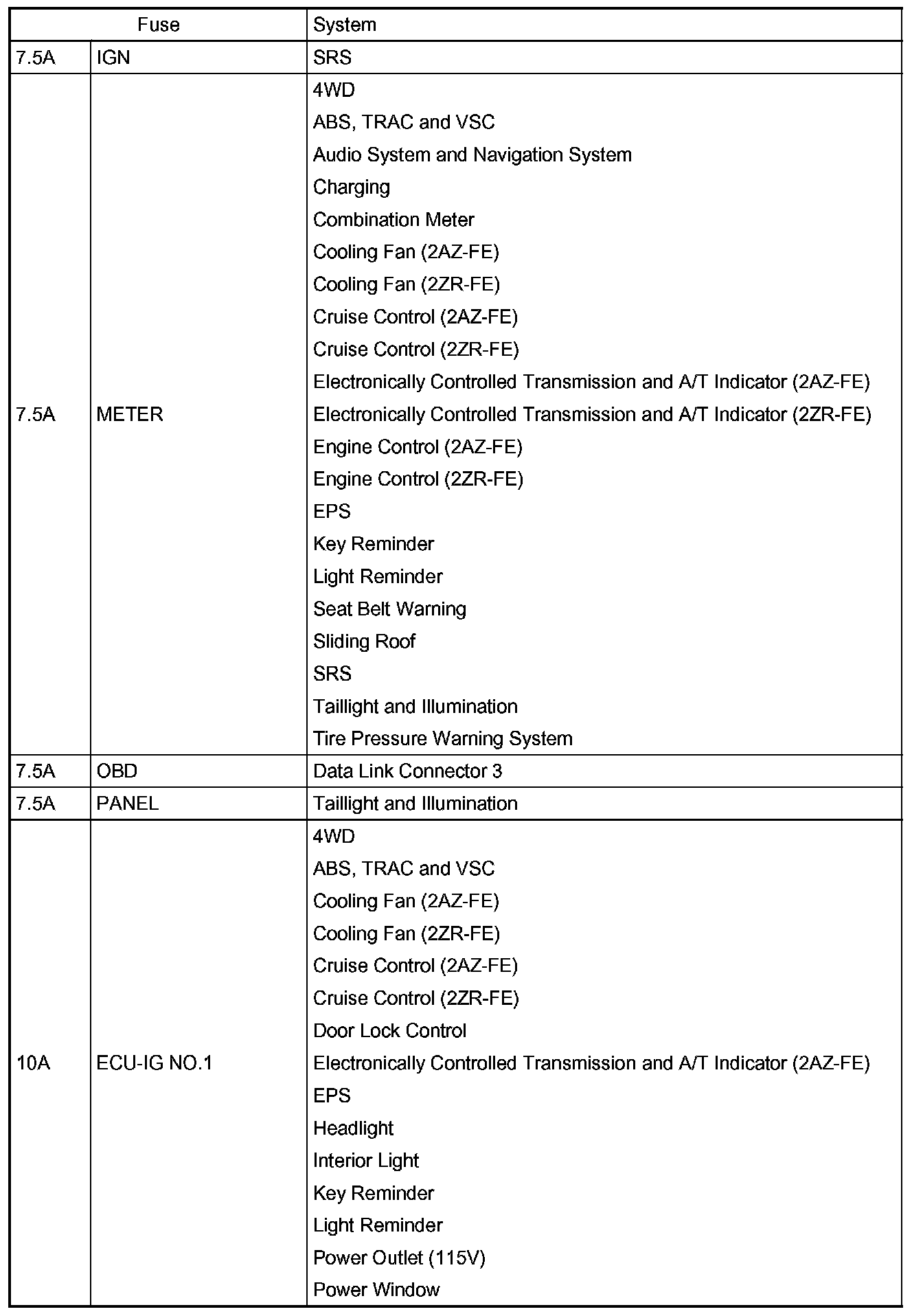 Matrix AWD L4-2.4L (2AZ-FE)