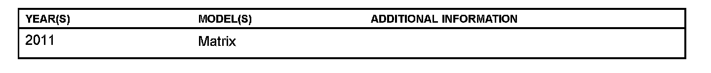 The 2011 model year Matrix is equipped with a direct-type Tire Pressure Warning System (TPWS).